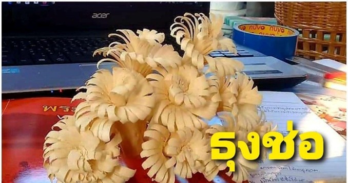 “การยกธุงขาว พร้อมกับการจุดพลุหลังจากทอดกฐินเสร็จก็เพื่อเป็นสัญลักษณ์อันรับรู้ว่าพิธีกรรมทำบุญกฐินอุทิศครบถ้วนสมบูรณ์แล้ว อีกทั้งยังเป็นการสื่อสารให้ดวงวิญญาณของผู้ตายมารับเอากุศลผลบุญ” (สมศักดิ์ พรมแก้ว, 2563).
